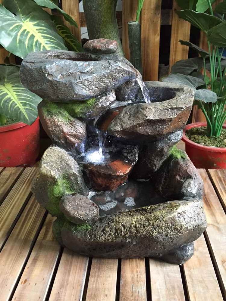 Water fountains, streams of water cascade downward across natural, polished river rocks , as nature's original lullaby,helping you escape from the stress,clearing your mind,slowly melts away your tension.